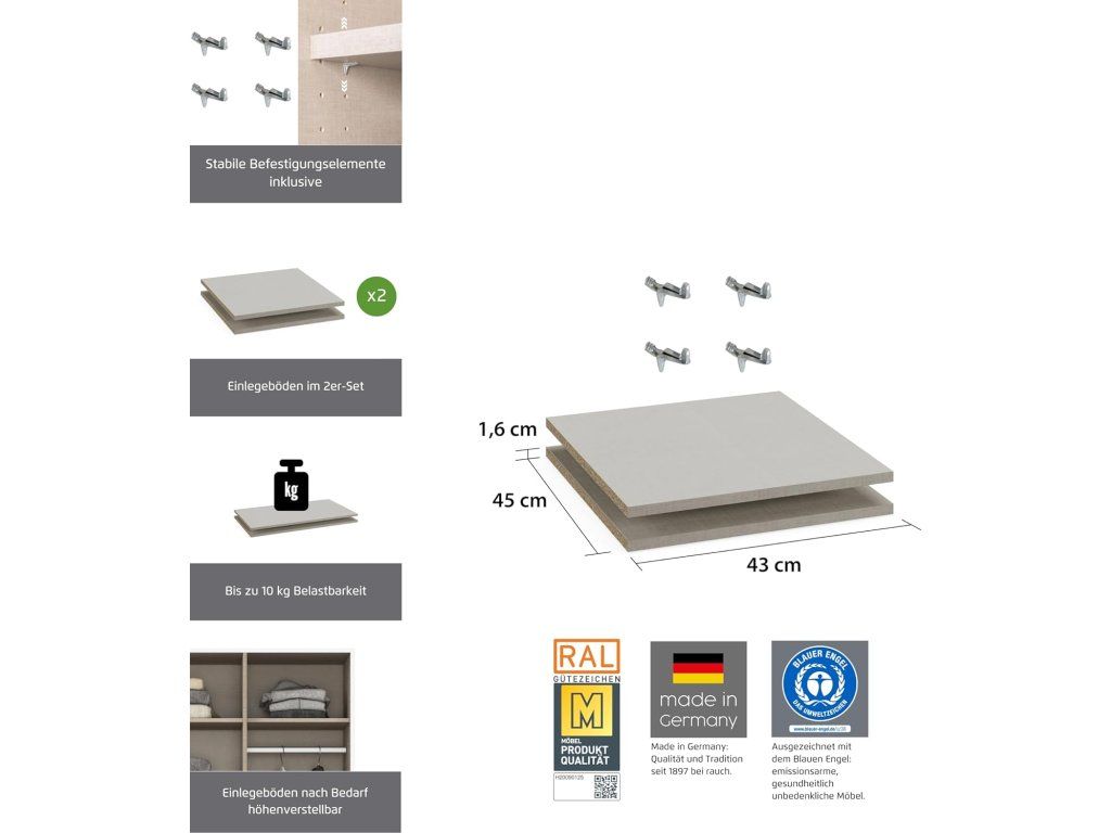 Rauch Möbel vkládací police do skříně sada 2 ks 43 × 45 cm Texline