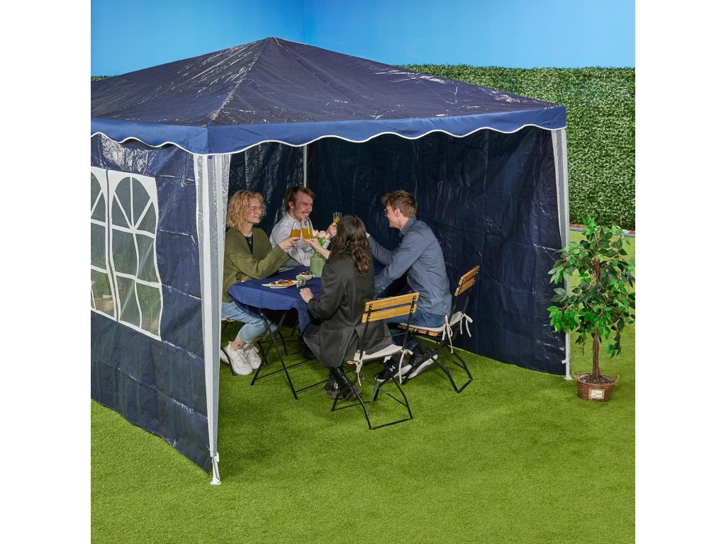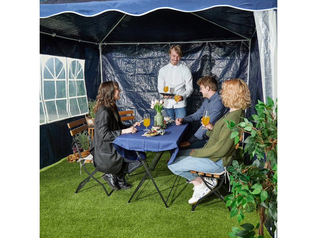 Boční stěny se snadno připevňují pomocí suchých zipů a pásků, což umožňuje rychlou montáž i demontáž bez použití nářadí. Jsou ideální pro zahradní oslavy, grilování, kempování i sezónní venkovní akce.