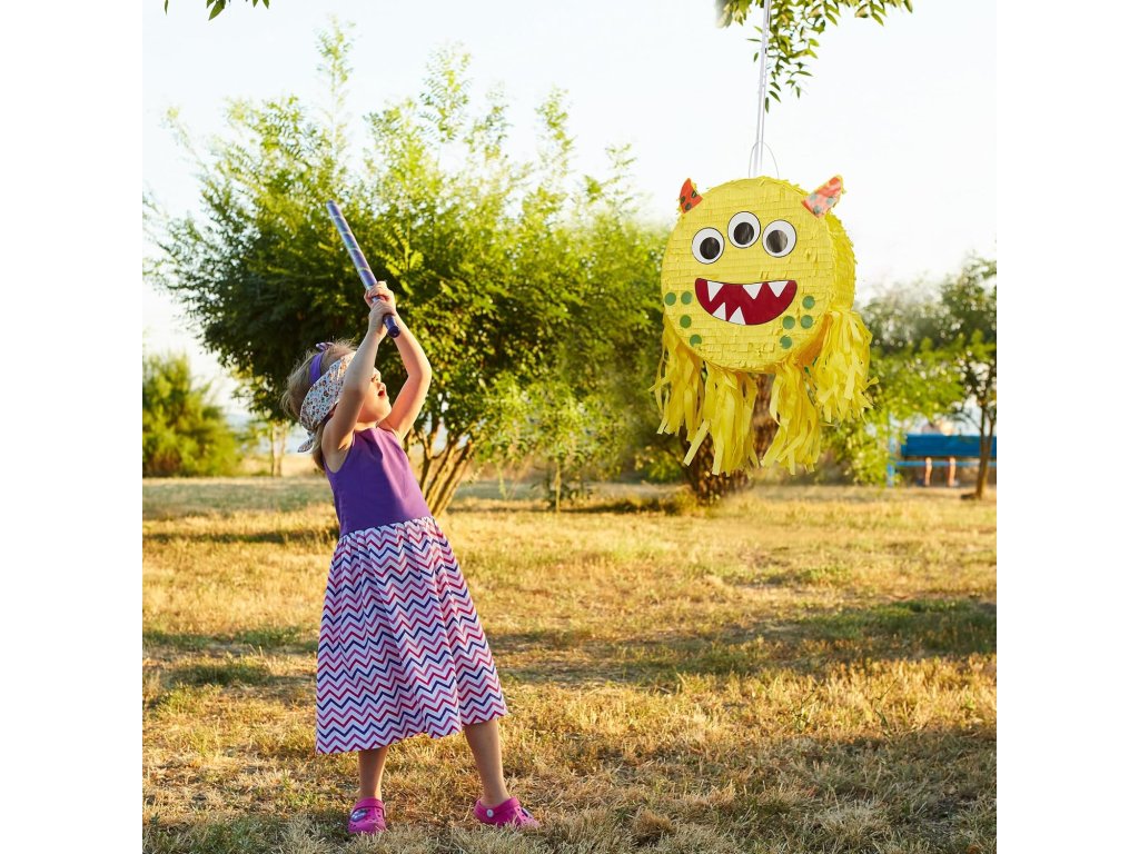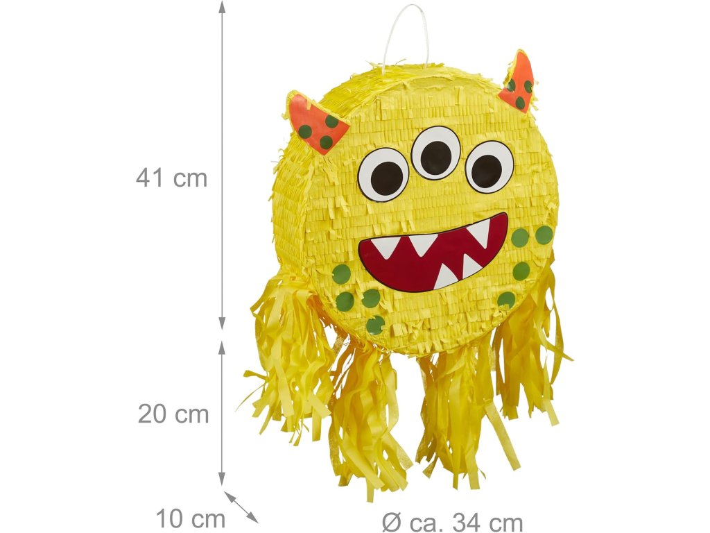 Relaxdays Monstrum Pinata je jednoduchá, ale efektní dekorace a hra v jednom — skvělý doplněk pro každou oslavu. Doporučuje se naplnit drobnými sladkostmi nebo malými dárečky a zavěsit do prostoru, kde se slaví.