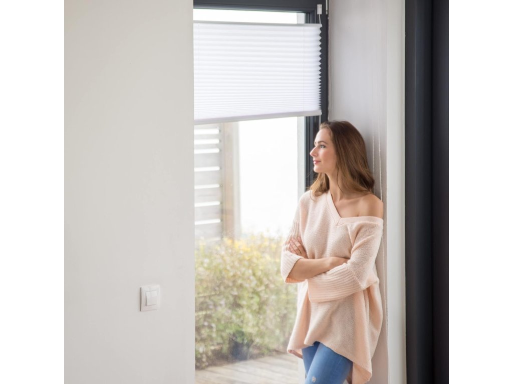 Čistý vzhled, soukromí a světlo v ideální rovnováze. Průsvitná plisé roleta (skládaná roleta) je skvělým řešením pro moderní stínění oken i balkonových dveří. Jemná struktura látky propouští denní světlo, ale zároveň pomáhá omezit pohledy zvenku.
