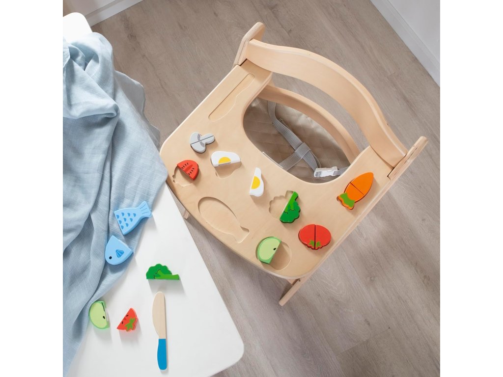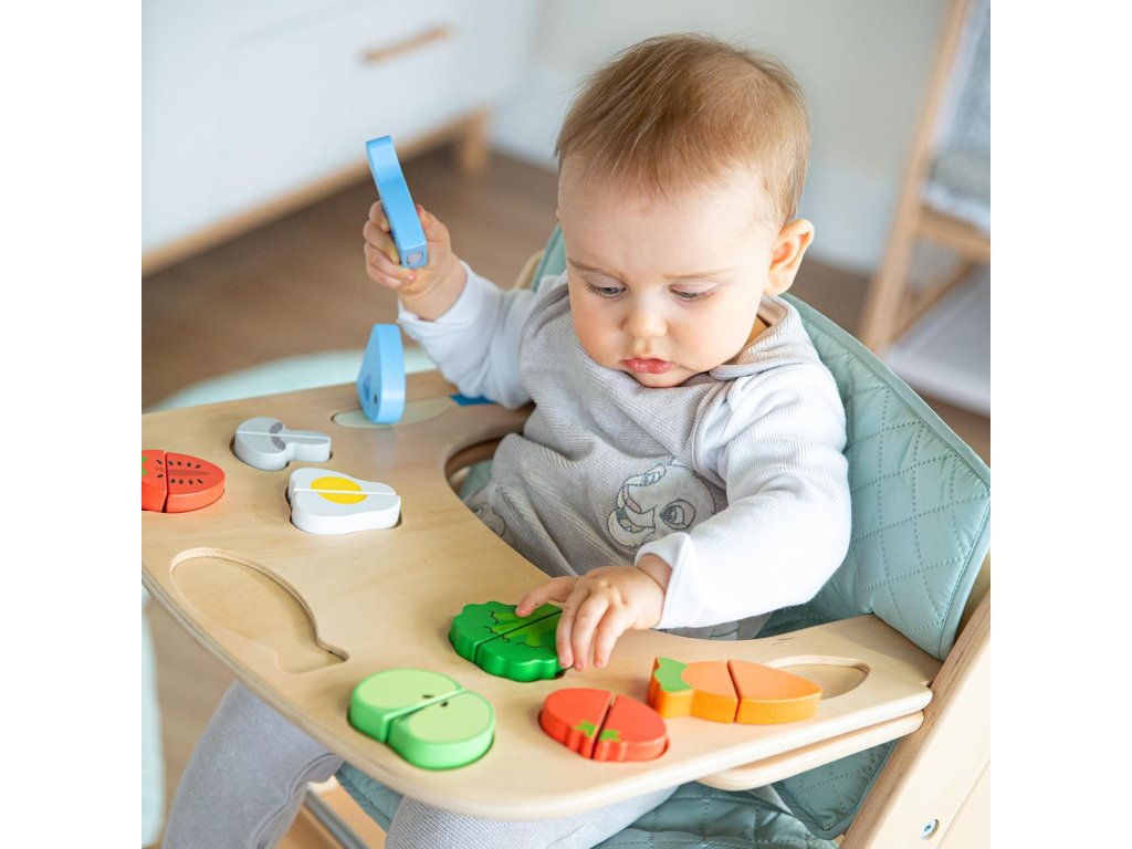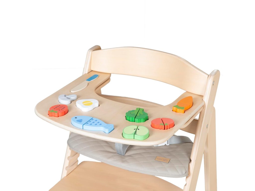 Roba jídelní prkno s hracími prvky montessori pro vysokou židli Sit Up Flex je dřevěný doplněk, který transformuje židličku v praktickou plochu pro jídlo i hru. Prkno snadno nasadíte na židličku Sit Up Flex a díky integrovaným hracím prvkům ve tvaru ovoce a zeleniny podporuje vaše dítě při objevování jídla a zábavy. Prkno je vyrobeno z kvalitního přírodního dřeva a je snadné jej čistit vlhkým hadříkem, aby bylo stále hygienicky čisté.