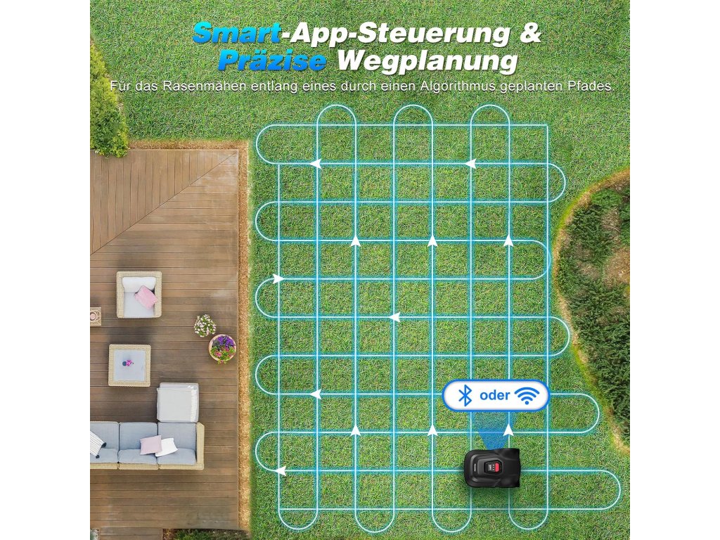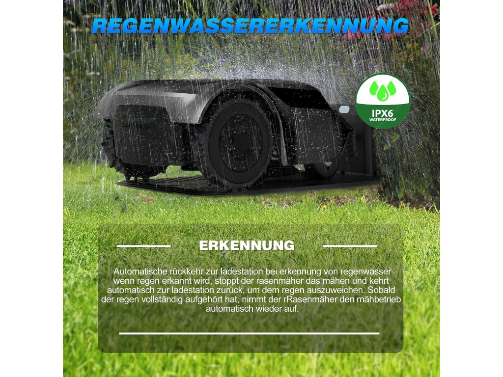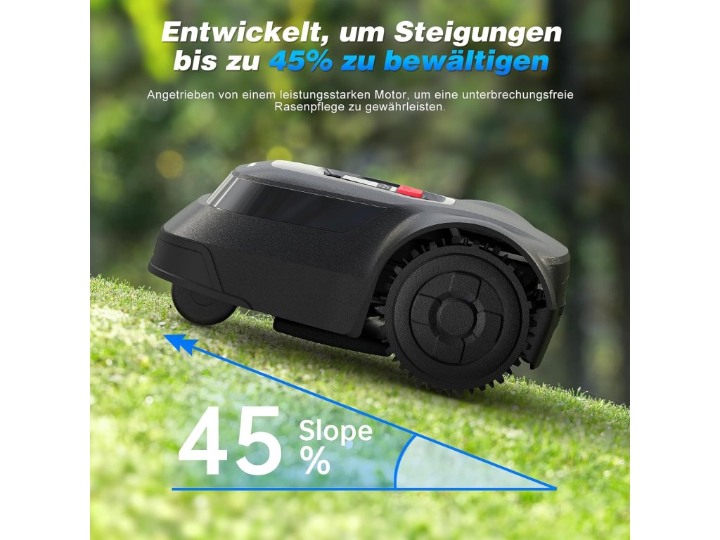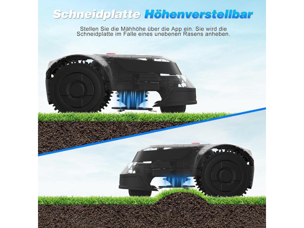 Sekačka využívá inteligentní navigační systém a bezpečnostní senzory, které jí umožňují vyhýbat se překážkám, automaticky měnit směr a bezpečně se zastavit při nadzvednutí nebo nárazu. Výška sečení je nastavitelná podle potřeby, takže trávník zůstává vždy v perfektním stavu.