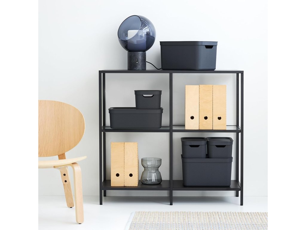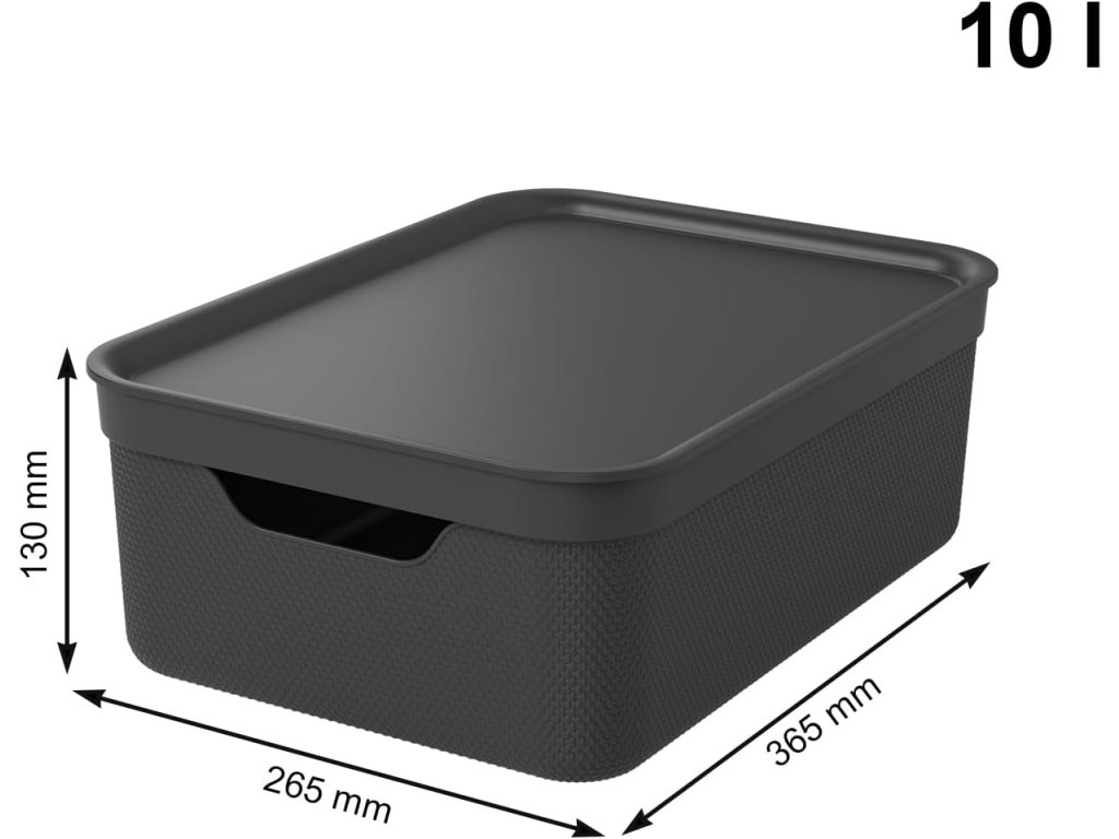Moderní antracitová barva a jemně strukturovaný povrch zapadnou do každého interiéru. Praktický úchyt na přední straně usnadňuje manipulaci a vytahování boxu z polic nebo skříní.