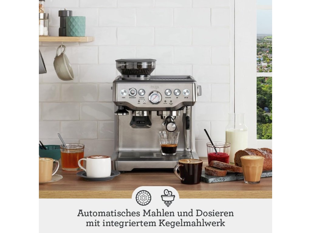 Sage The Barista Express je pákový kávovar navržený pro milovníky kvalitní kávy, kteří chtějí mít celý proces přípravy pod kontrolou. Integrovaný kónický mlýnek namele kávu přímo před extrakcí, čímž zachovává maximální aroma.