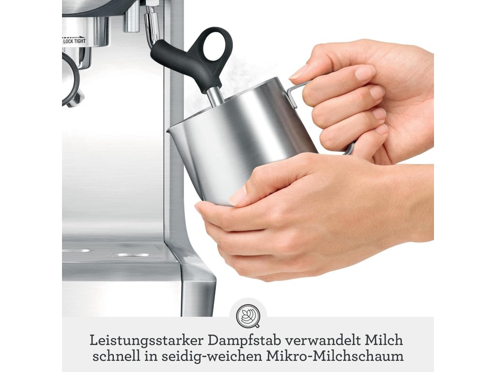 - Ruční napěňovač mléka: převezměte kontrolu nad procesem napěňování mléka pomocí výkonné parní tyče. Vykouzlete hladkou mikropěnu s lahodnou, hedvábnou texturou – ideální pro latte Art