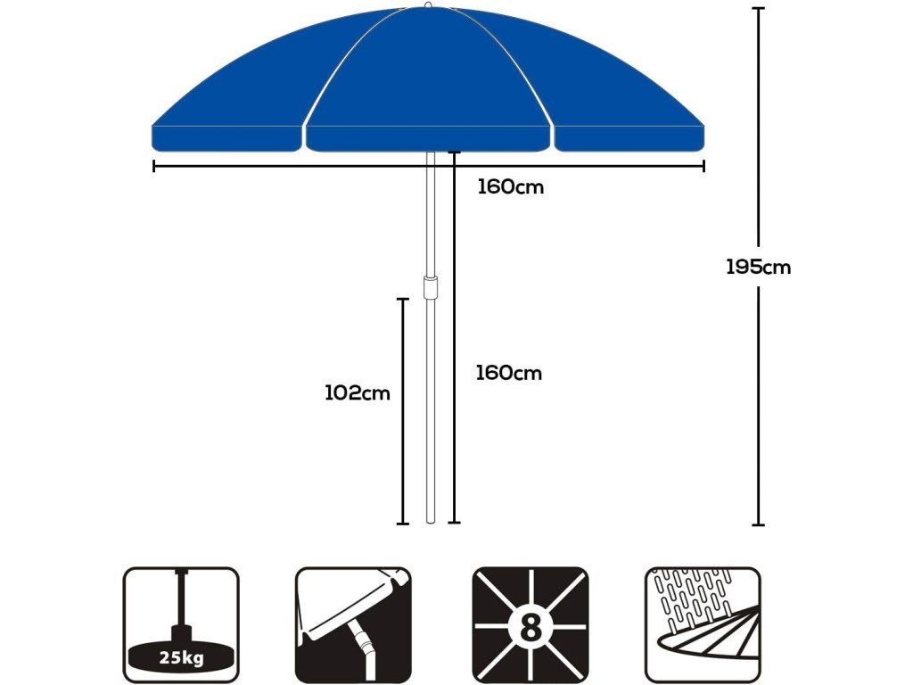 Sekey plážový slunečník 160 cm modrý s naklápěním a obalem