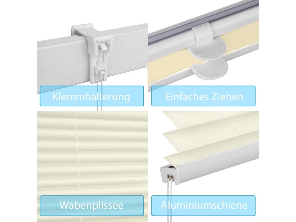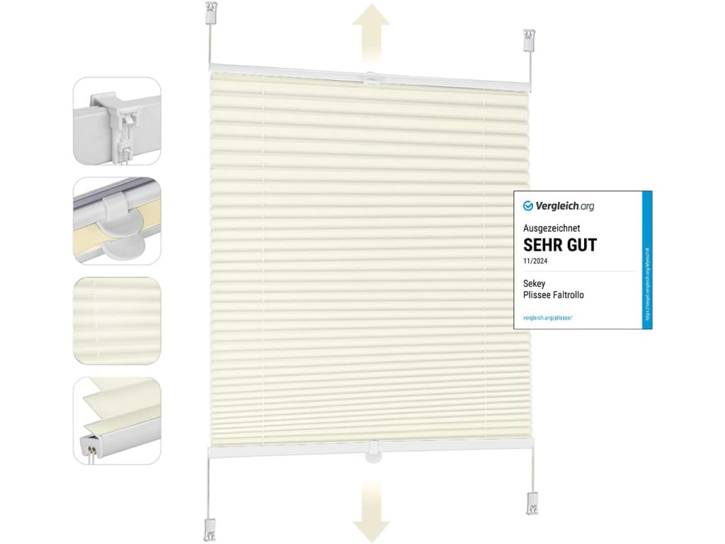 Sekey Plisé Klemmfix je praktické plisované stínění oken určené pro snadné a rychlé upevnění bez vrtání. Díky přiloženým čtyřem nastavitelným klemmfix úchytům jej jednoduše nasadíte na rám okna bez nutnosti použití nářadí, což je ideální řešení pro pronájmy i doma, kde nechcete poškodit rám.