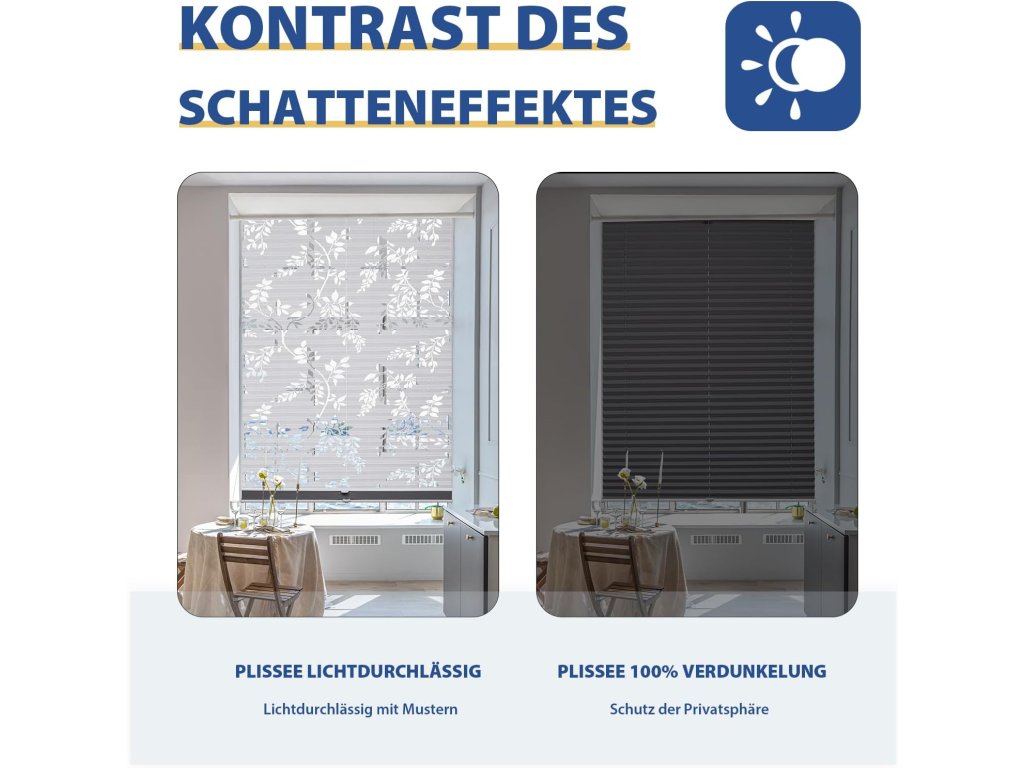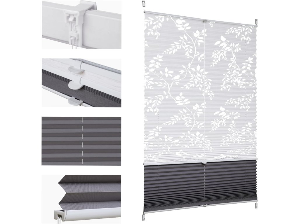 Dvojitá plisé roleta Sekey Day & Night nabízí flexibilní řešení stínění bez nutnosti vrtání do rámu okna.