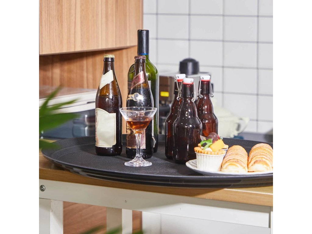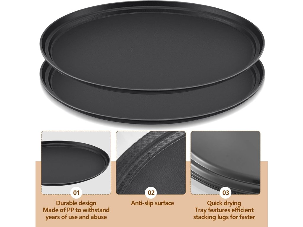 Velký kulatý tvar o rozměrech 32 cm nabízí dostatek prostoru pro servírování více talířů, sklenic nebo táců najednou. Podnosy jsou vyrobeny z odolného PP plastu, který je lehký, pevný a snadno se čistí.