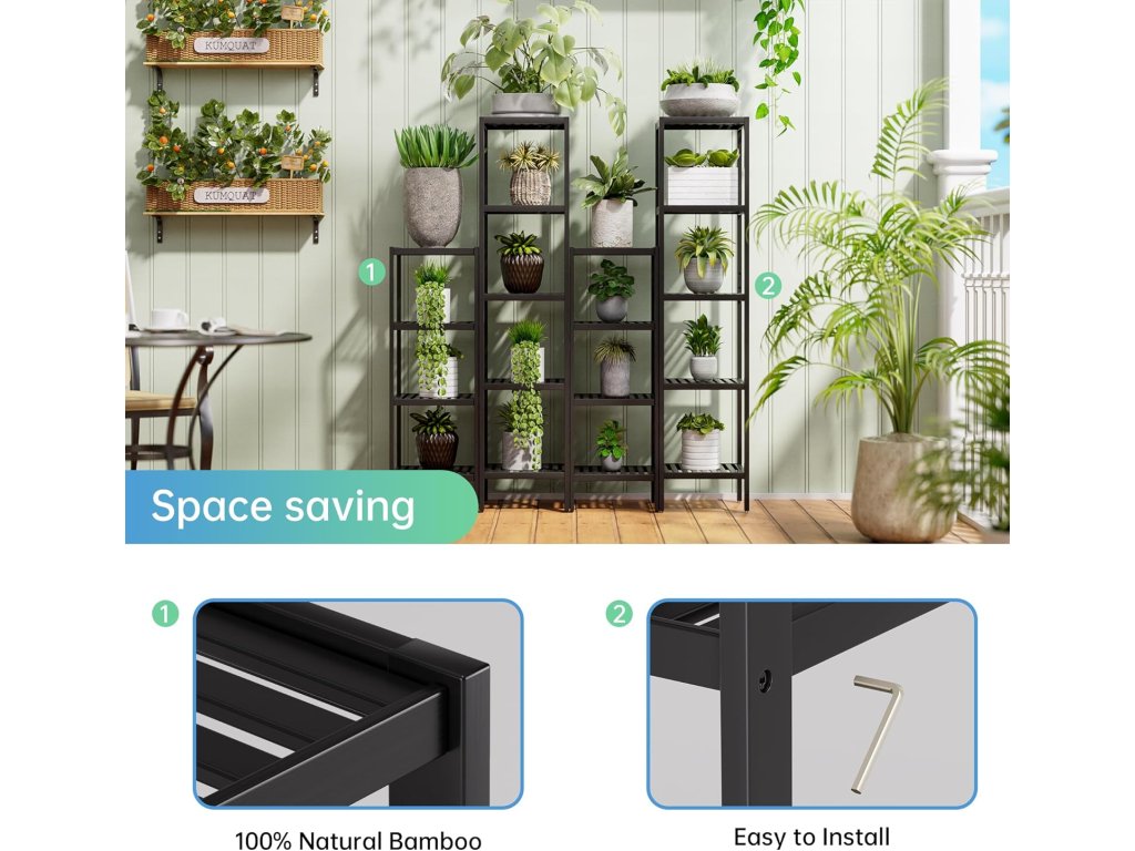 SMIBUY Bambusový regál 4 patra – černý 🖤