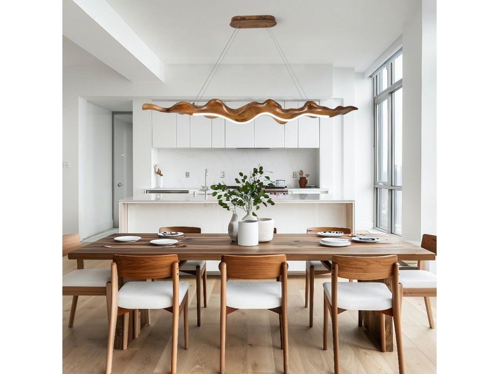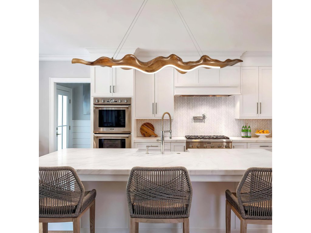 Elegantní závěsné LED svítidlo HvKvHvY v dekoru dřeva zaujme originálním vlnitým tvarem „listu“, který se skvěle hodí nad kuchyňský ostrůvek, jídelní stůl nebo do moderního obývacího prostoru. Svítidlo vytváří příjemné, rovnoměrné osvětlení a zároveň funguje jako výrazný designový prvek interiéru.