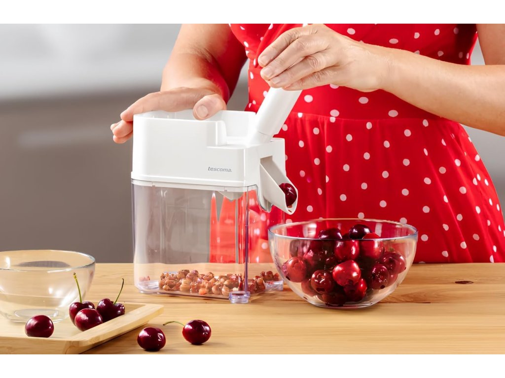 Praktický manuální odpeckovač třešní a višní značky Tescoma z řady HANDY je ideální pomocník do každé kuchyně. Snadno a rychle odstraní pecky z čerstvého, kompotovaného i mraženého ovoce bez poškození dužiny.