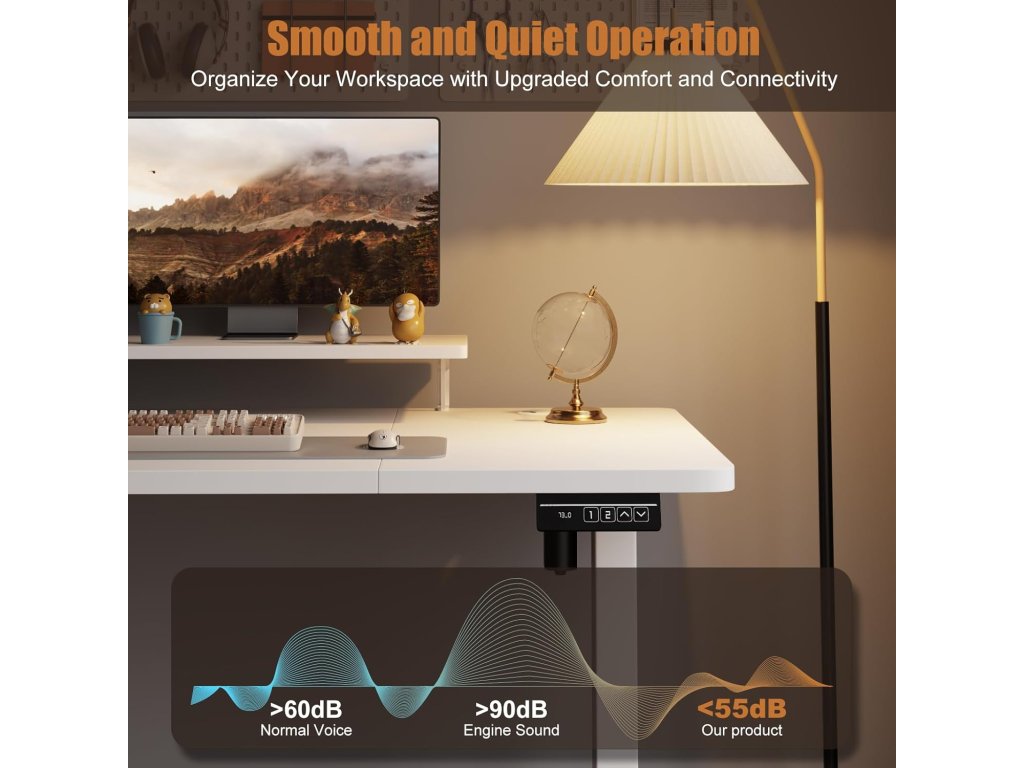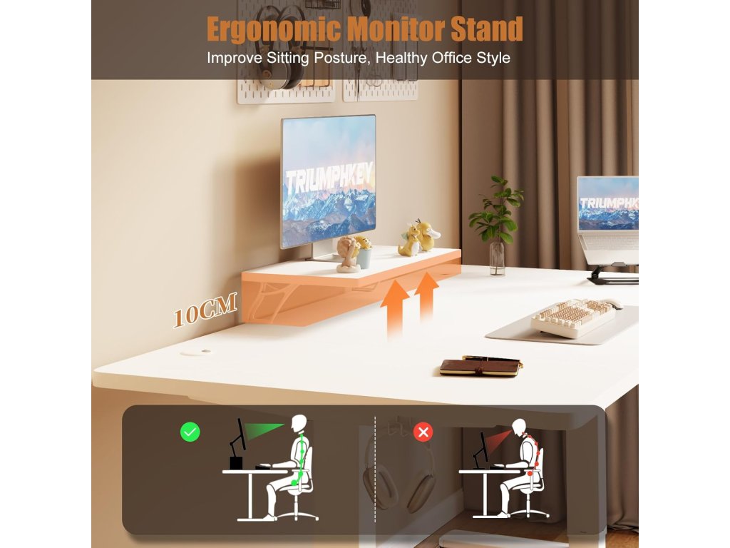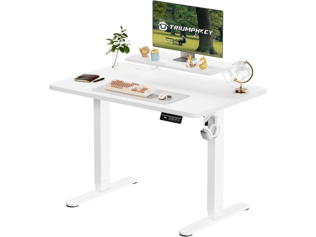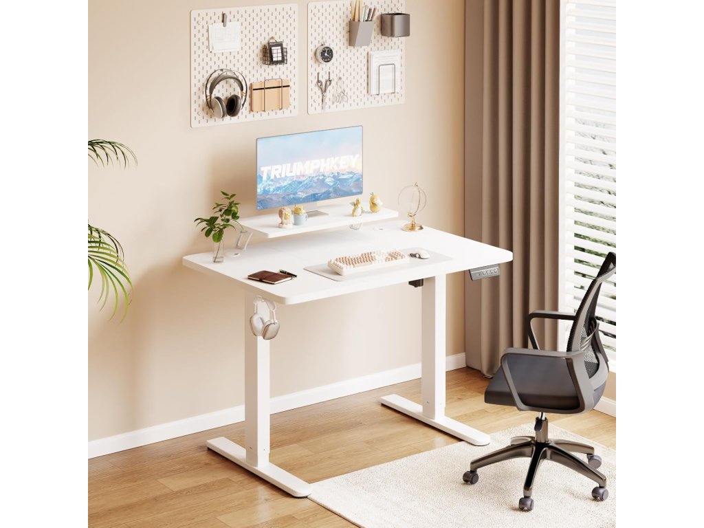 TRIUMPHKEY elektrický výškově nastavitelný stůl se stojanem na monitor 120 x 60 cm, bílý