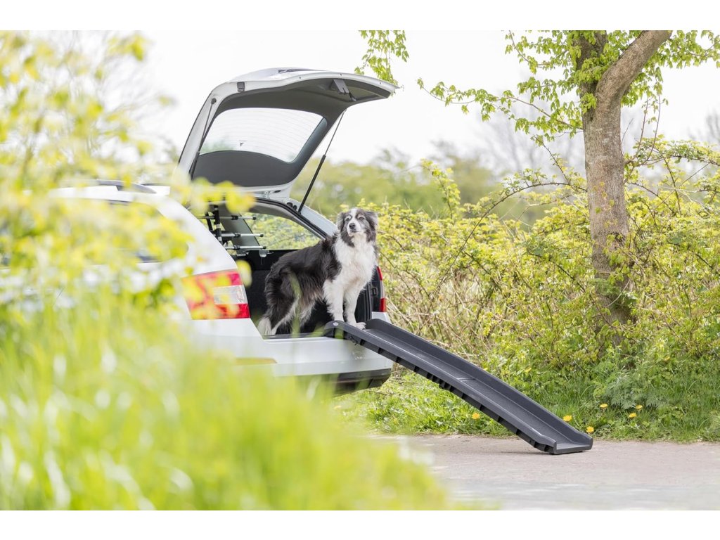 Trixie Petwalk 3939 je skládací nástupní rampa pro psy, která výrazně uleví kloubům při nastupování do auta nebo při překonávání výškových rozdílů. Díky protiskluzové nášlapné ploše a zvýšeným bočním okrajům je použití bezpečné i pro starší psy nebo psy s omezenou pohyblivostí.