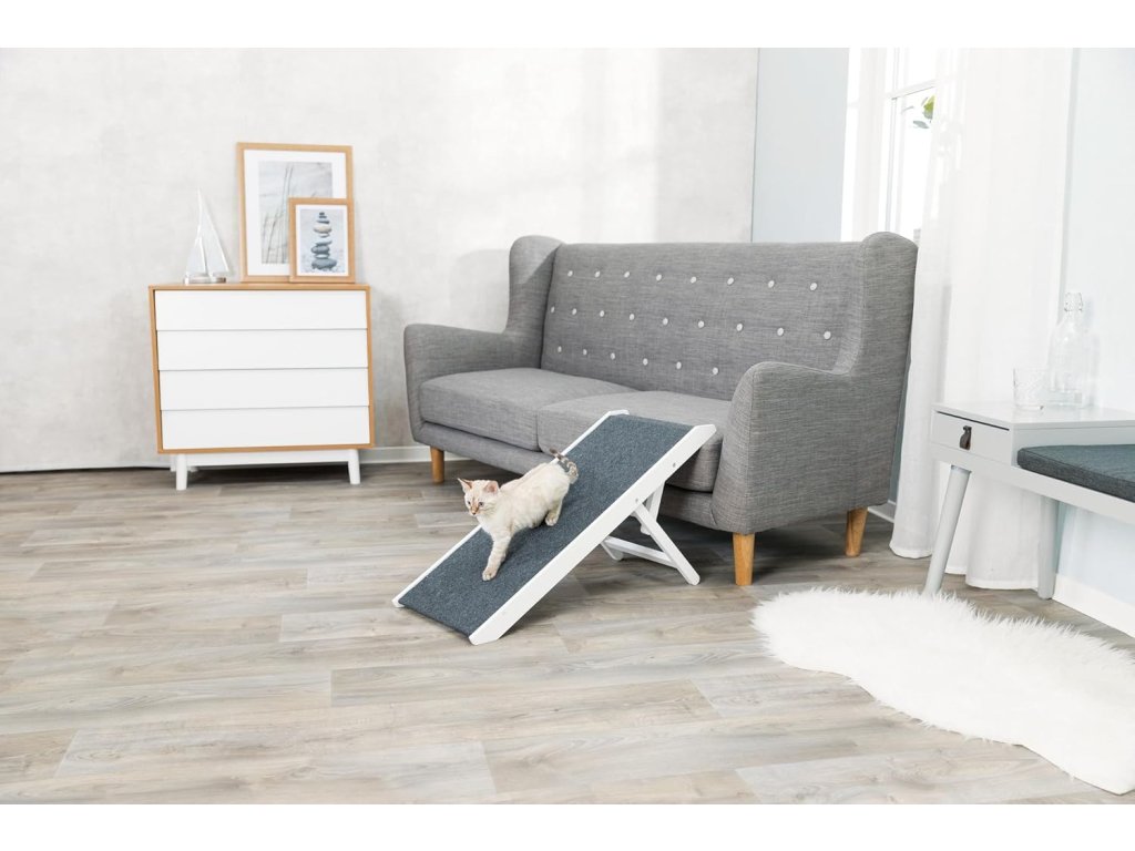 Praktická rampa Trixie 39375 usnadňuje malým, starším nebo nemocným psům a kočkám přístup na vyvýšená místa bez nadměrného zatížení kloubů. Ideální řešení pro domácnosti, kde mazlíček spí na gauči nebo posteli.
