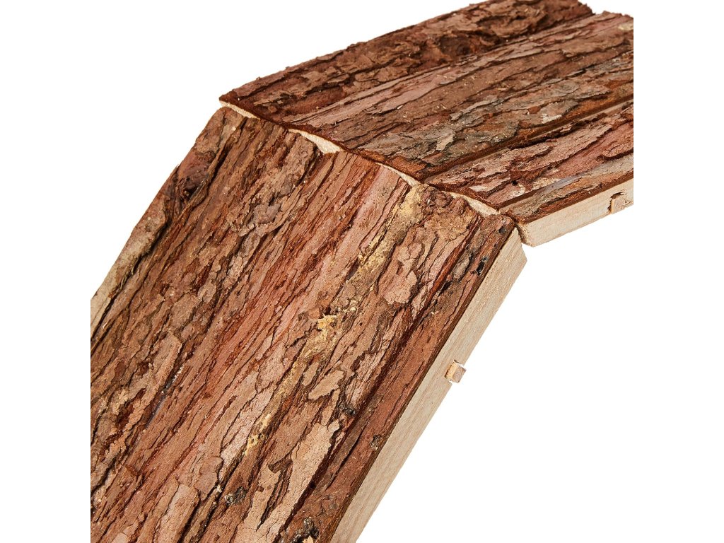 Most je vyroben z přírodního neošetřeného dřeva s kůrou, které je zcela bezpečné pro zvířata a podporuje jejich přirozené chování. Hrubší povrch pomáhá obrušování drápků a zároveň poskytuje lepší stabilitu při pohybu.