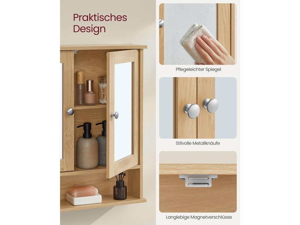 Udržujte svou koupelnu přehlednou a elegantní díky této nástěnné skříňce se zrcadlem od značky VASAGLE. Kombinuje moderní design s praktickým úložným prostorem a je ideální volbou pro každodenní použití.