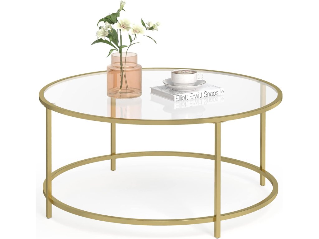 VASAGLE Kulatý konferenční stolek LGT21G zlatý 84 cm