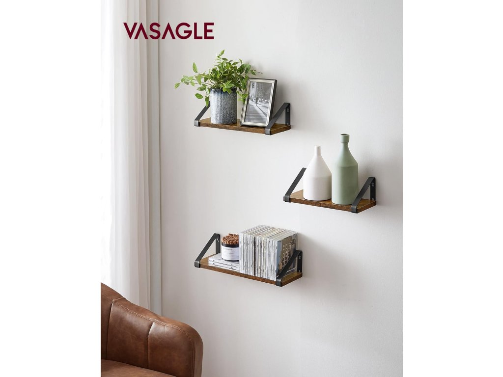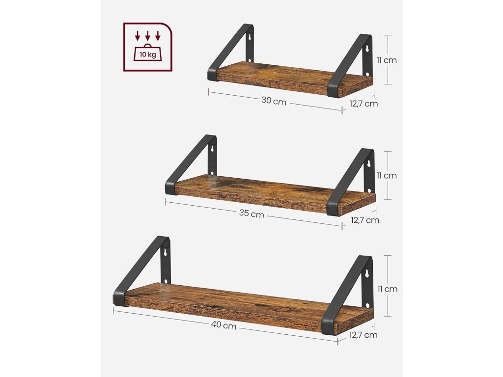 VASAGLE nástěnné police 3 ks vintage 30/35/40 cm LWS33BX