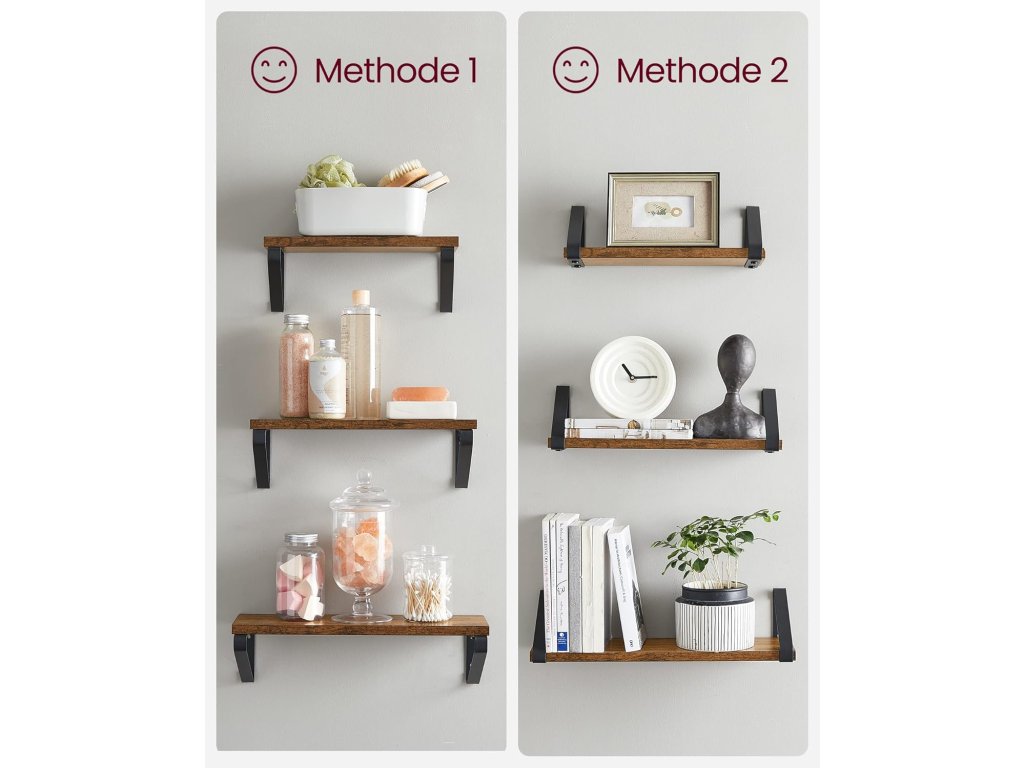 Police jsou vhodné pro moderní i rustikální interiéry. Díky pevné konstrukci unesou knihy, rámečky i drobné dekorace a zároveň vytvoří elegantní nástěnnou kompozici. 📚✨