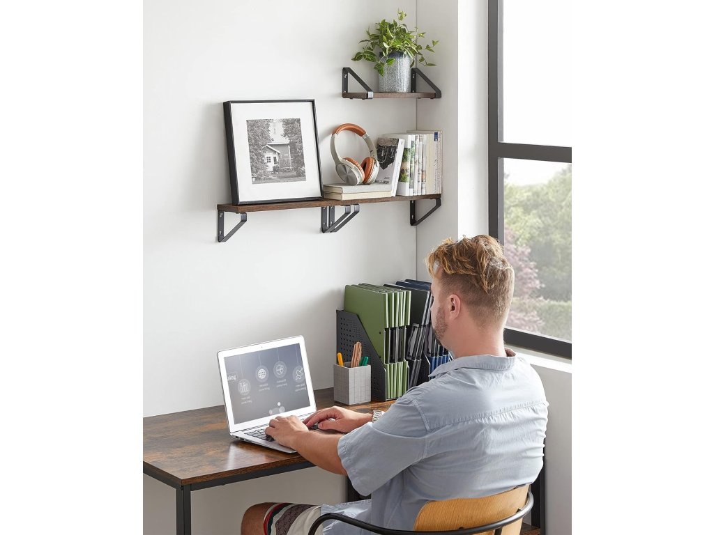 Stylová sada tří plovoucích polic v oblíbeném industriálním designu kombinuje vintage hnědou desku s matně černými kovovými držáky. Ideální doplněk do obývacího pokoje, kuchyně, pracovny i koupelny. 🖤