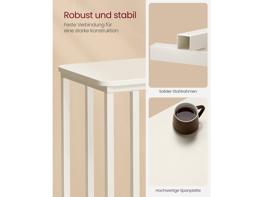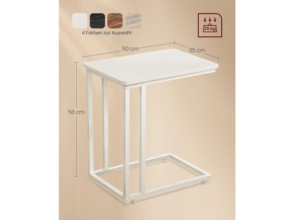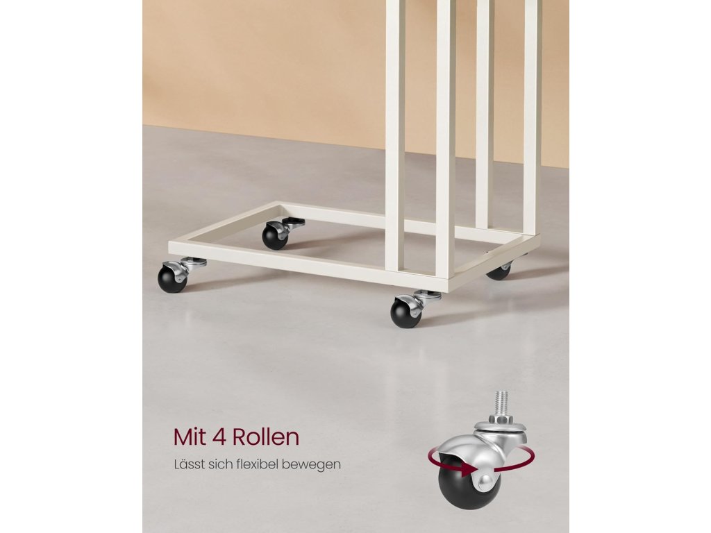 VASAGLE Odkládací stolek ve tvaru C s kolečky 35 x 50 x 60 cm krémově bílý