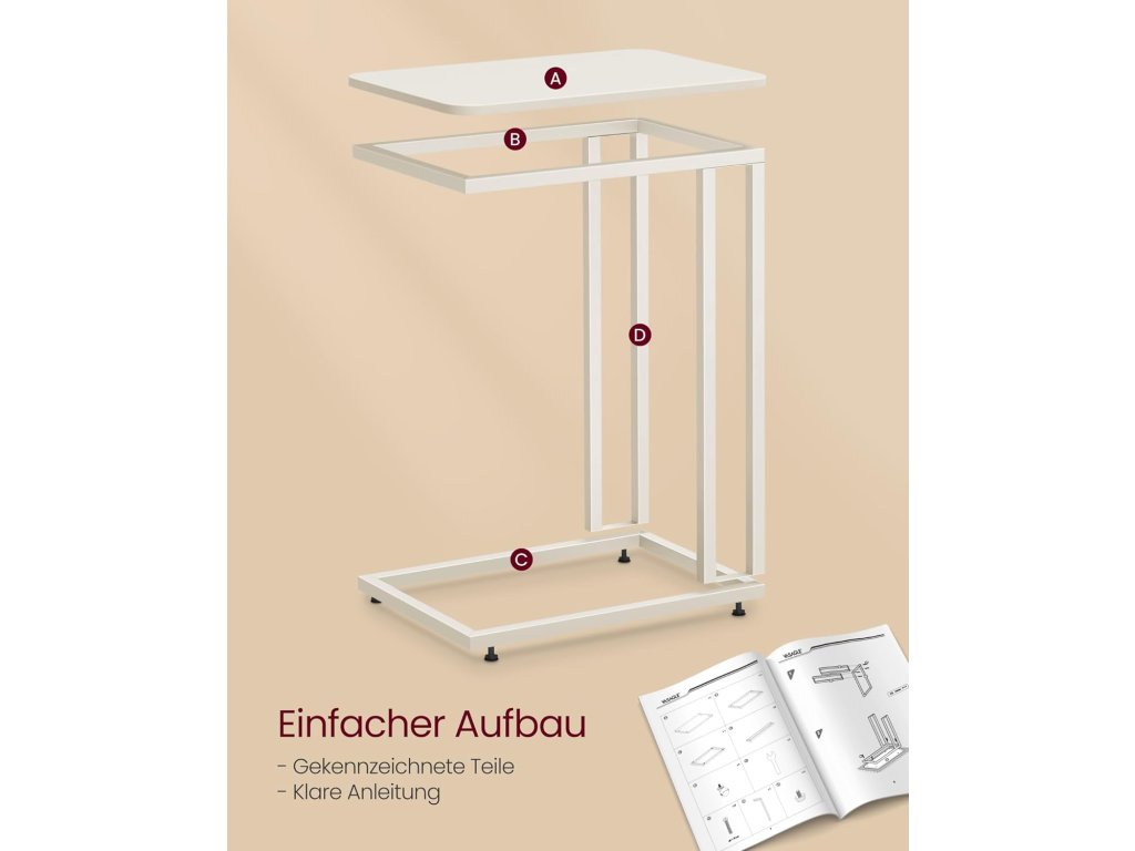 Stylový a praktický konferenční stolek VASAGLE v moderním provedení je ideálním řešením do obývacího pokoje, pracovny i ložnice. Díky chytrému tvaru C jej snadno zasunete pod pohovku nebo postel a vytvoříte si pohodlný prostor pro práci či odpočinek.