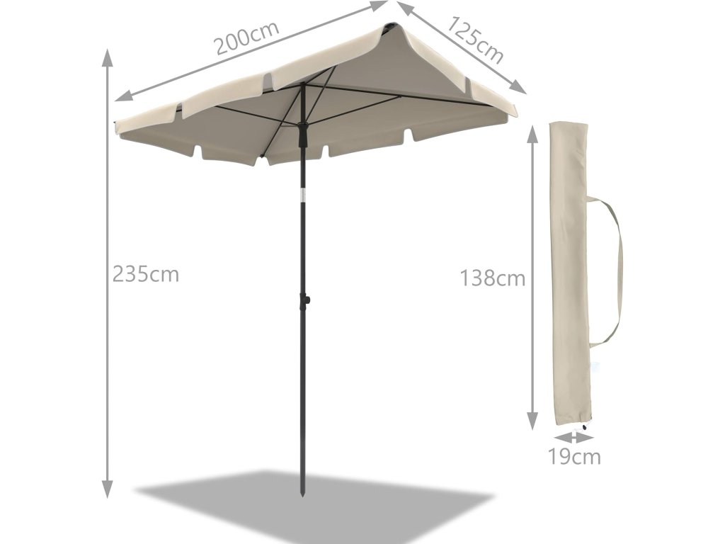 VOUNOT obdélníkový slunečník na balkon a terasu 200 × 125 cm béžový