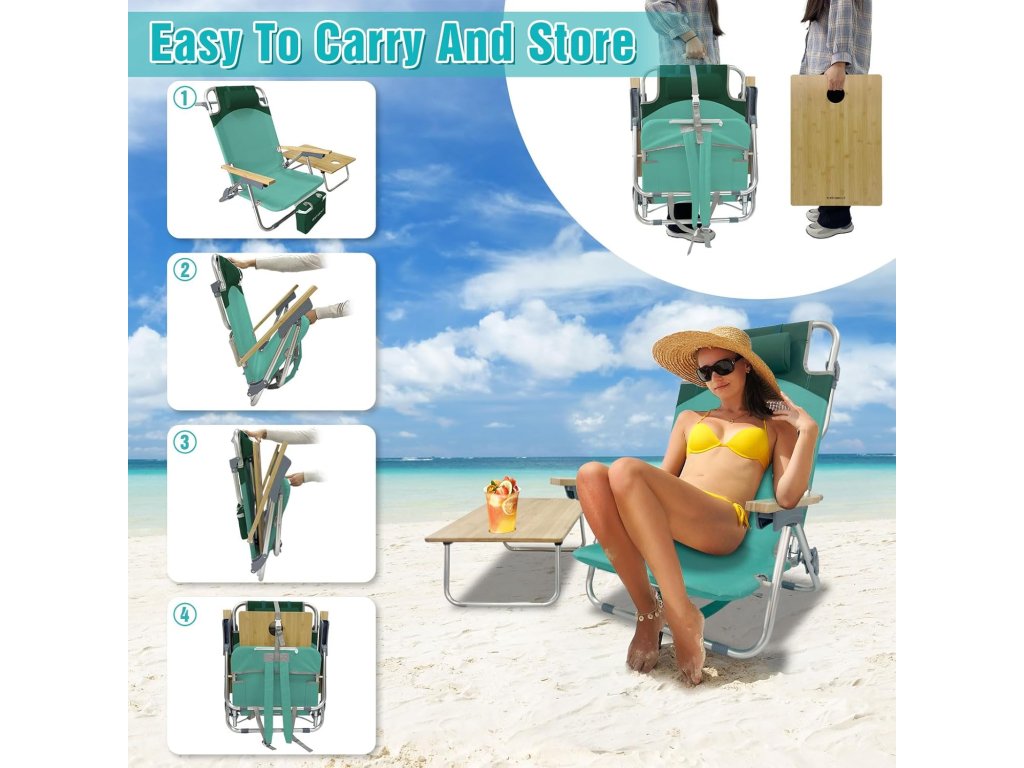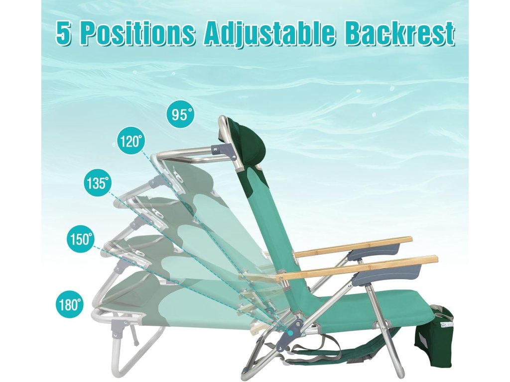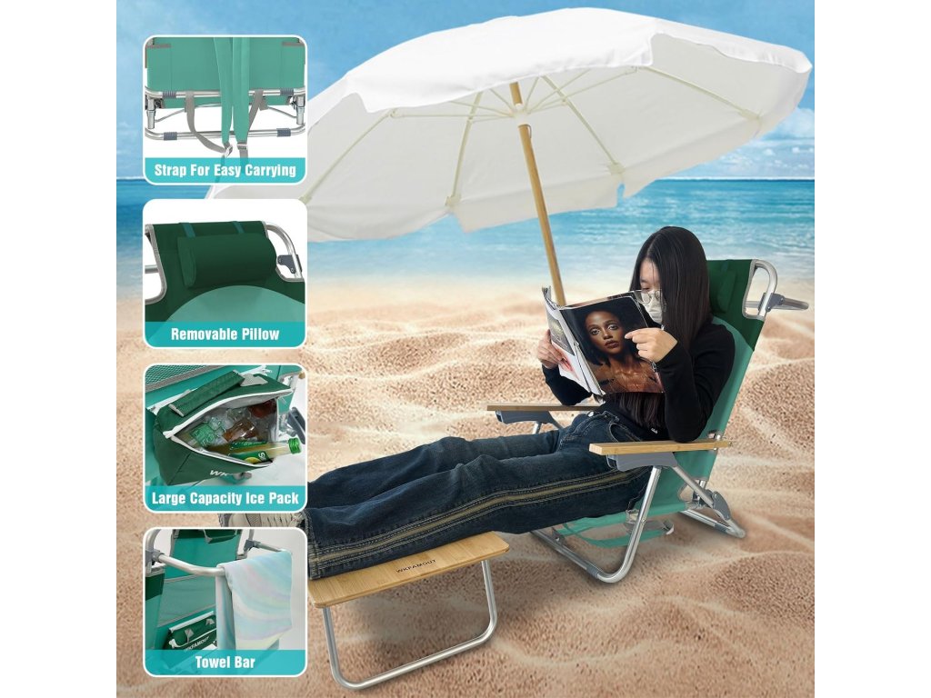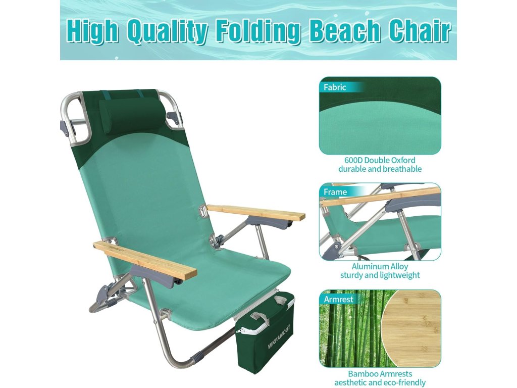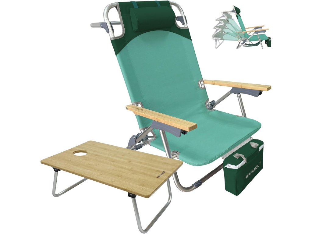 WKFAMOUT Plážová skládací židle s batohem a bambusovým stolkem 5 poloh zelená