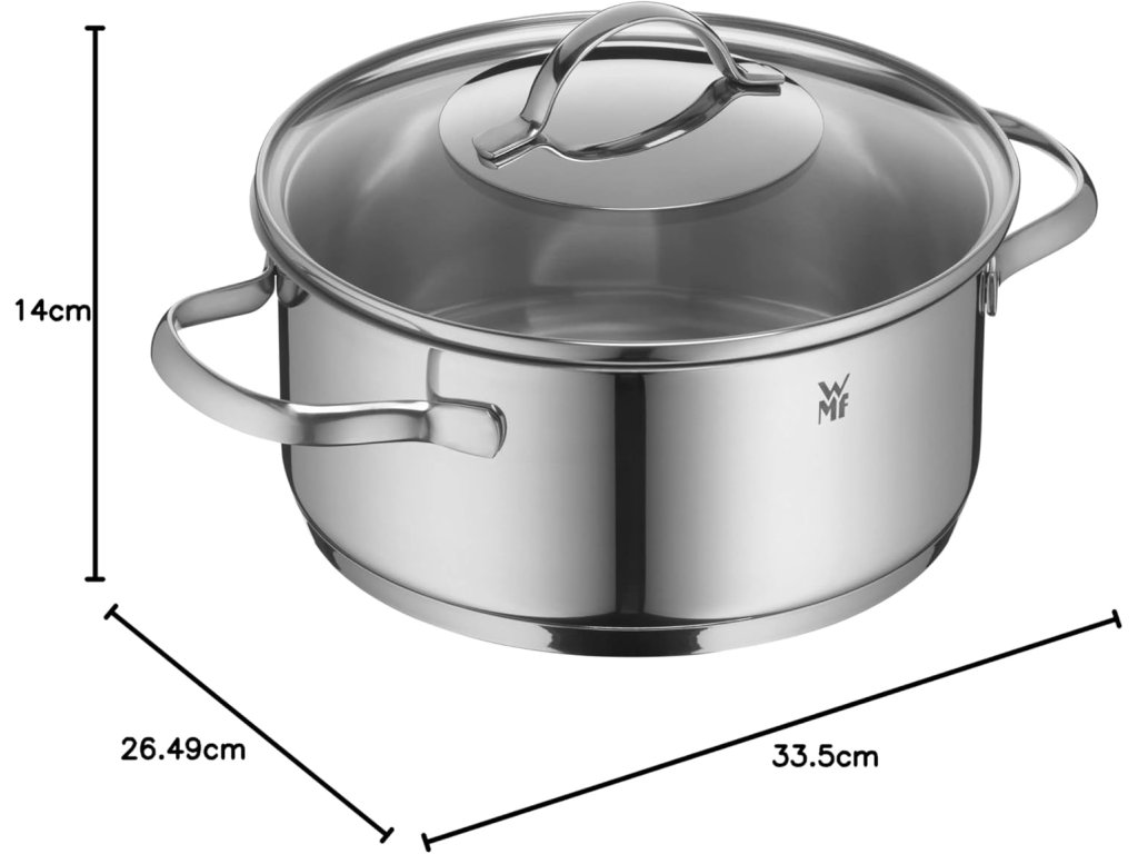 WMF Provence Plus hrnec o průměru 24 cm a objemu cca 4,1 l je vyroben z vysoce kvalitní Cromargan® nerezové oceli 18/10, která zaručuje dlouhou životnost a odolnost proti poškrábání. Hrnec je vhodný pro všechny typy varných desek včetně indukce a disponuje rovnoměrným rozvodem tepla. Masivní držadla zůstávají chladná a skleněná poklička umožňuje kontrolu vaření bez zbytečného zvedání. Snadná údržba a elegantní design činí z tohoto hrnce univerzální pomocník pro každodenní vaření.