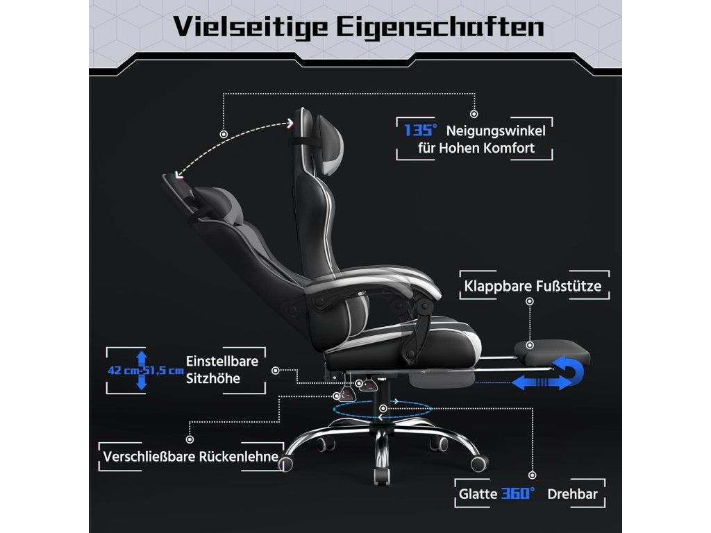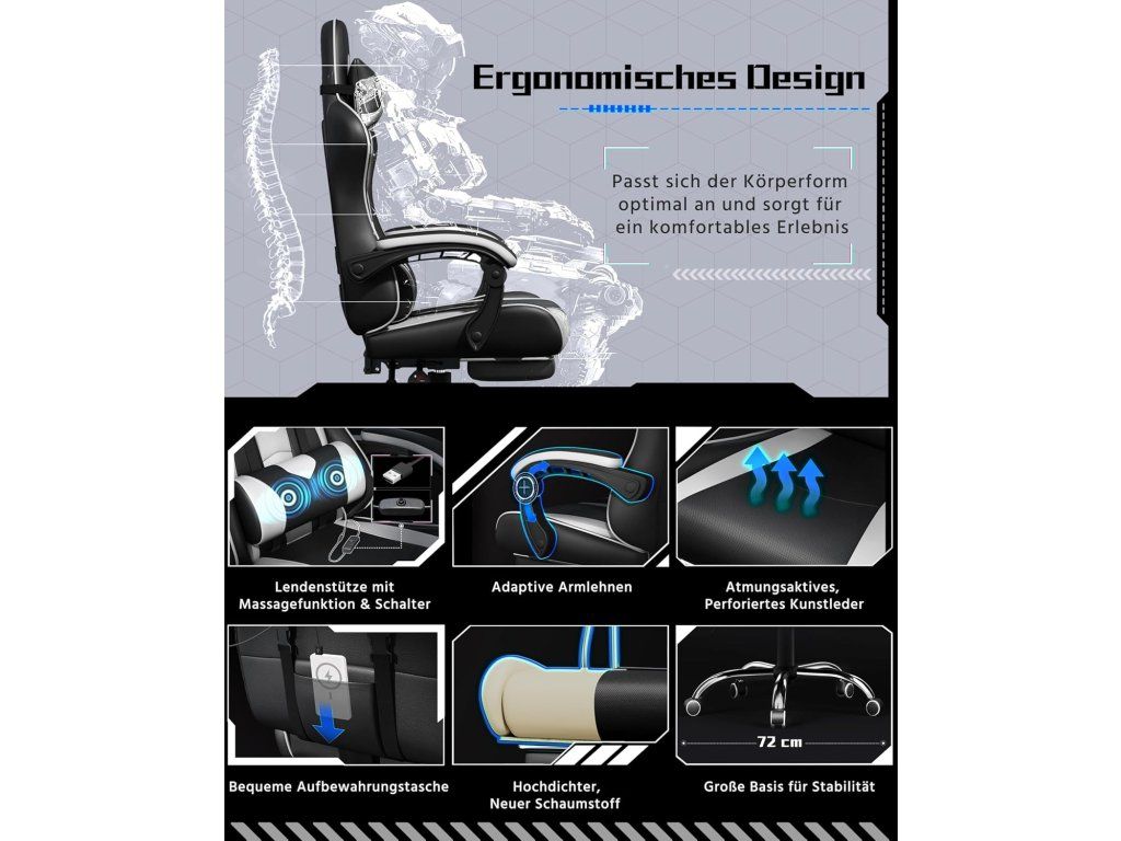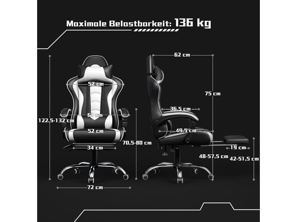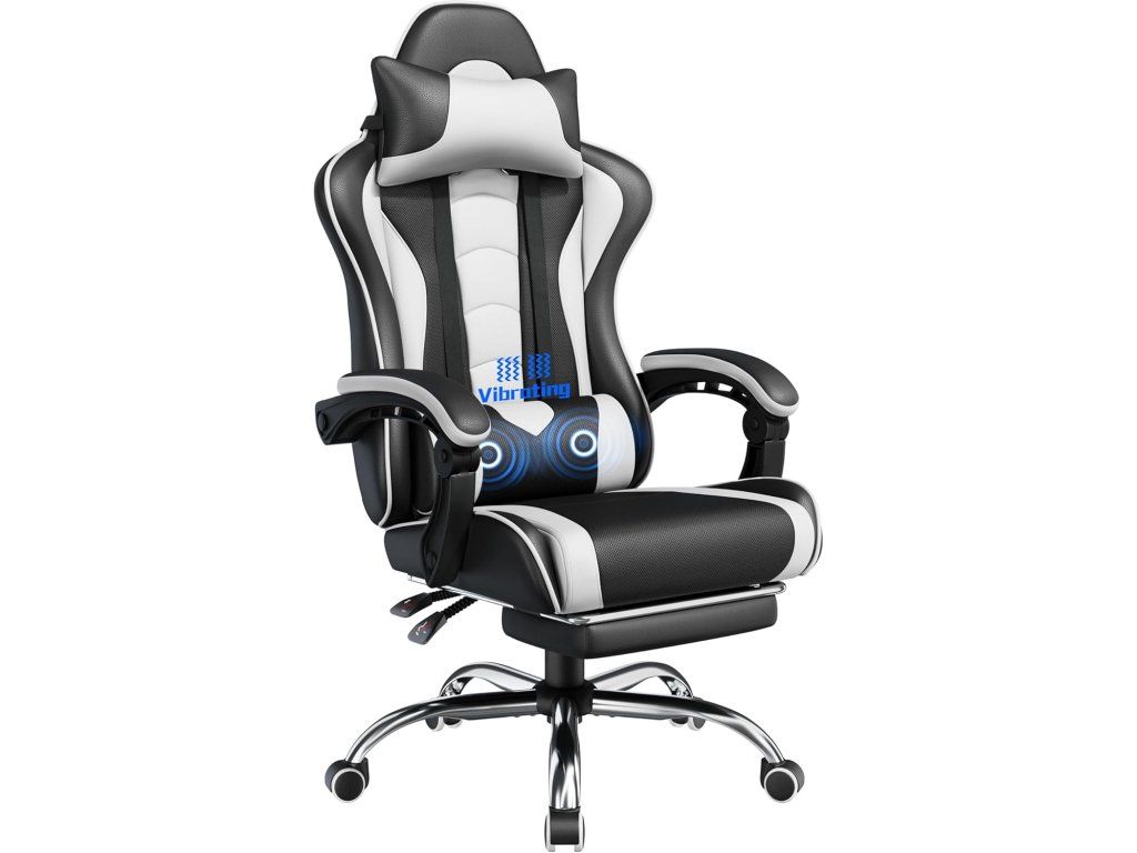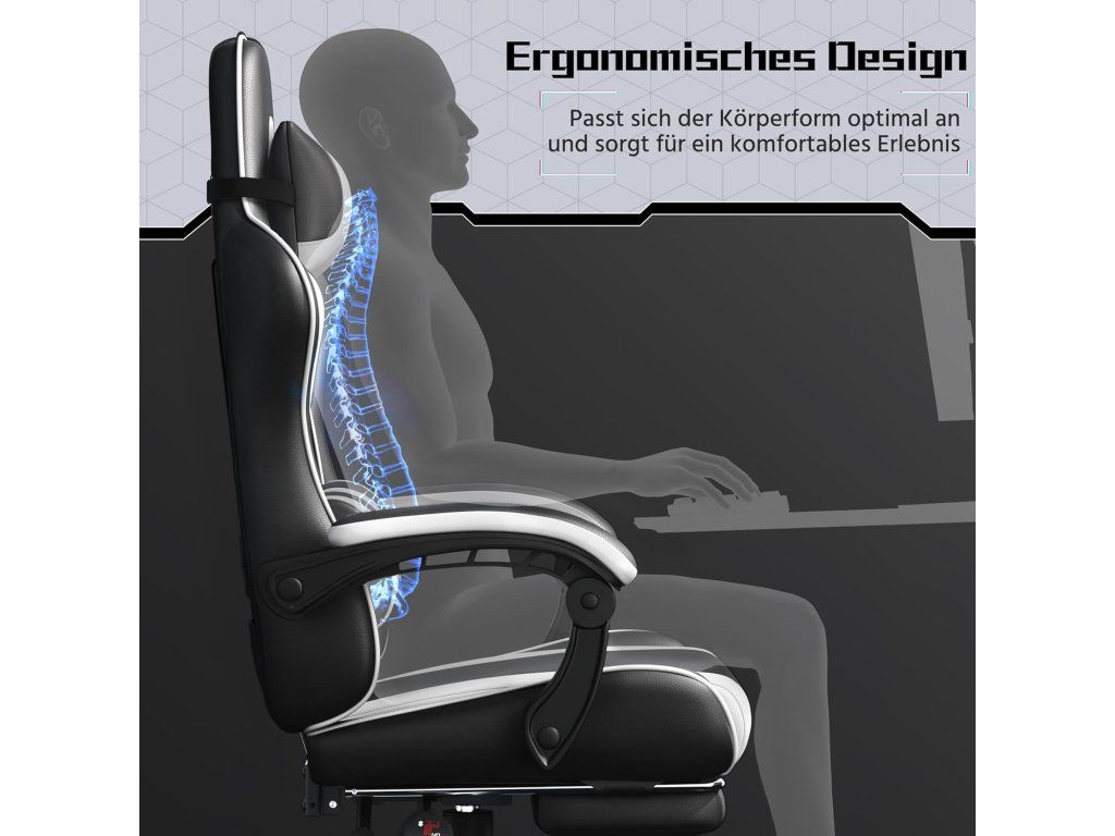 Yaheetech herní židle s masážní funkcí a opěrkou nohou bílá