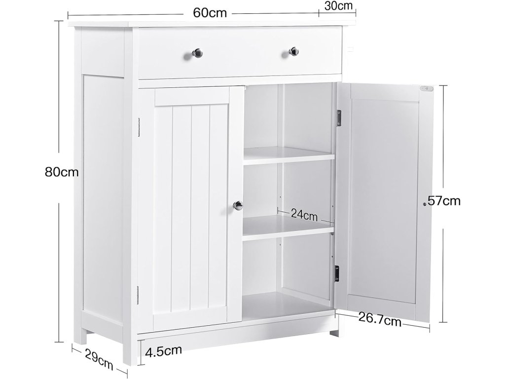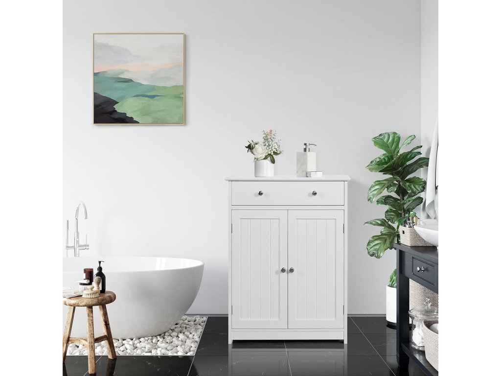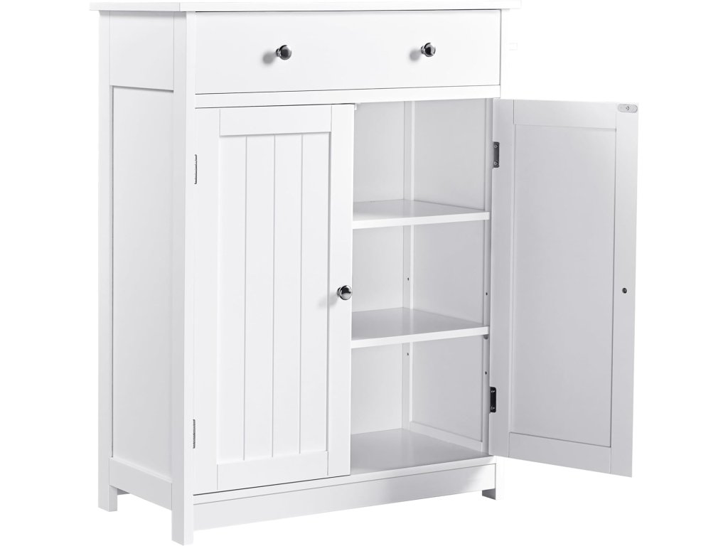 Yaheetech koupelnová skříňka s zásuvkou a dvojitými dveřmi bílá 60 × 30 × 80 cm