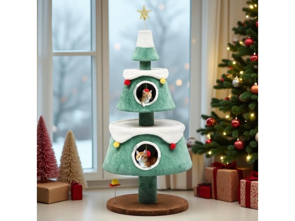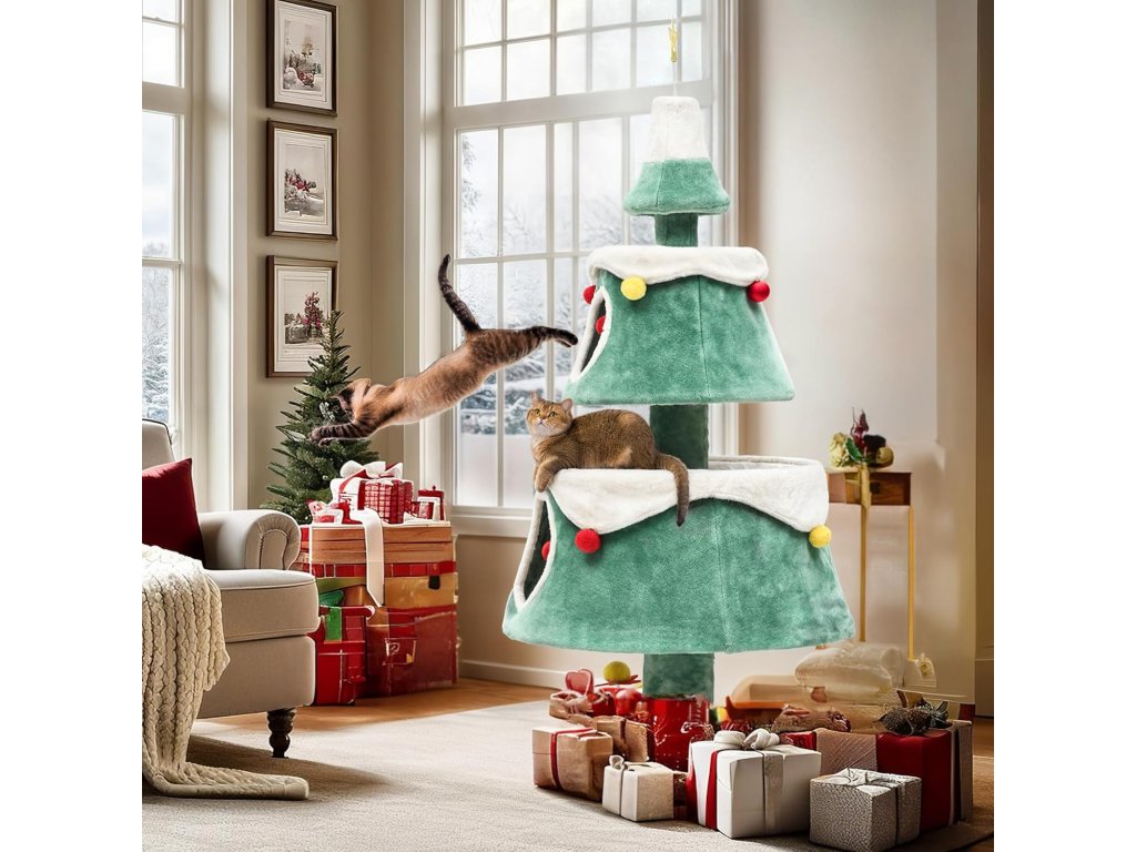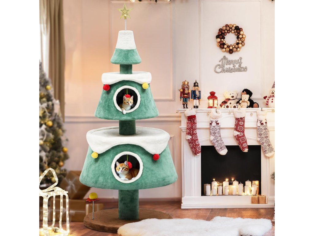 Stylový a originální kočičí škrabací strom YITAHOME v designu vánočního stromku je nejen praktickým kočičím nábytkem, ale i krásnou sezónní dekorací do vašeho interiéru.