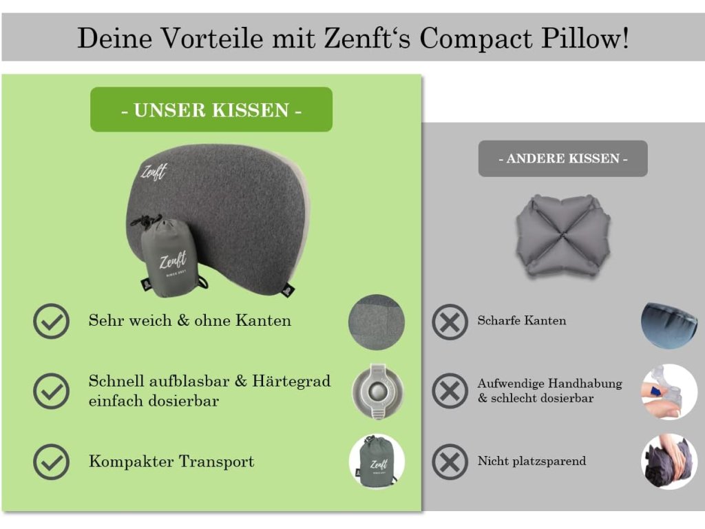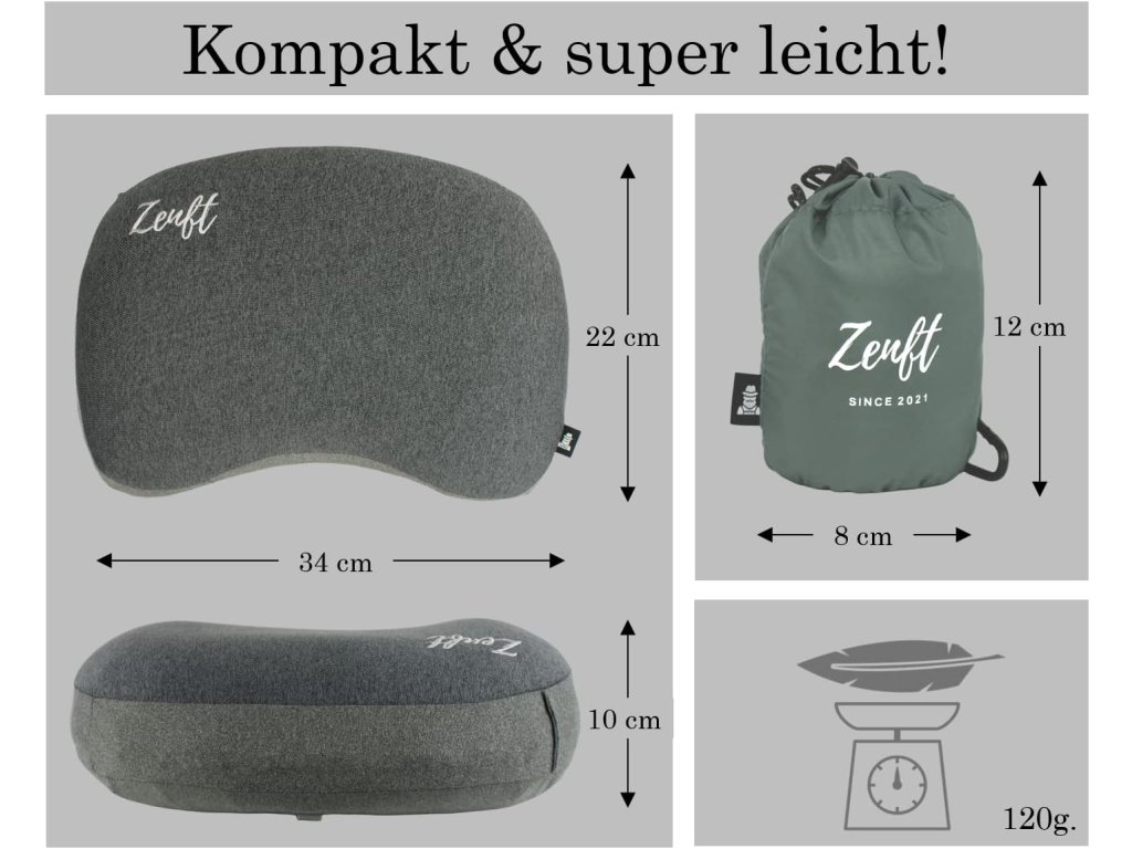 Cestovní polštář Zenft je navržen pro maximální pohodlí při dlouhých cestách. Díky ergonomickému tvaru poskytuje stabilní oporu krční páteři a zabraňuje únavě při sezení v autě, vlaku, autobusu nebo letadle. Po použití se jednoduše sbalí do přiloženého cestovního obalu, takže nezabere téměř žádné místo v zavazadle.